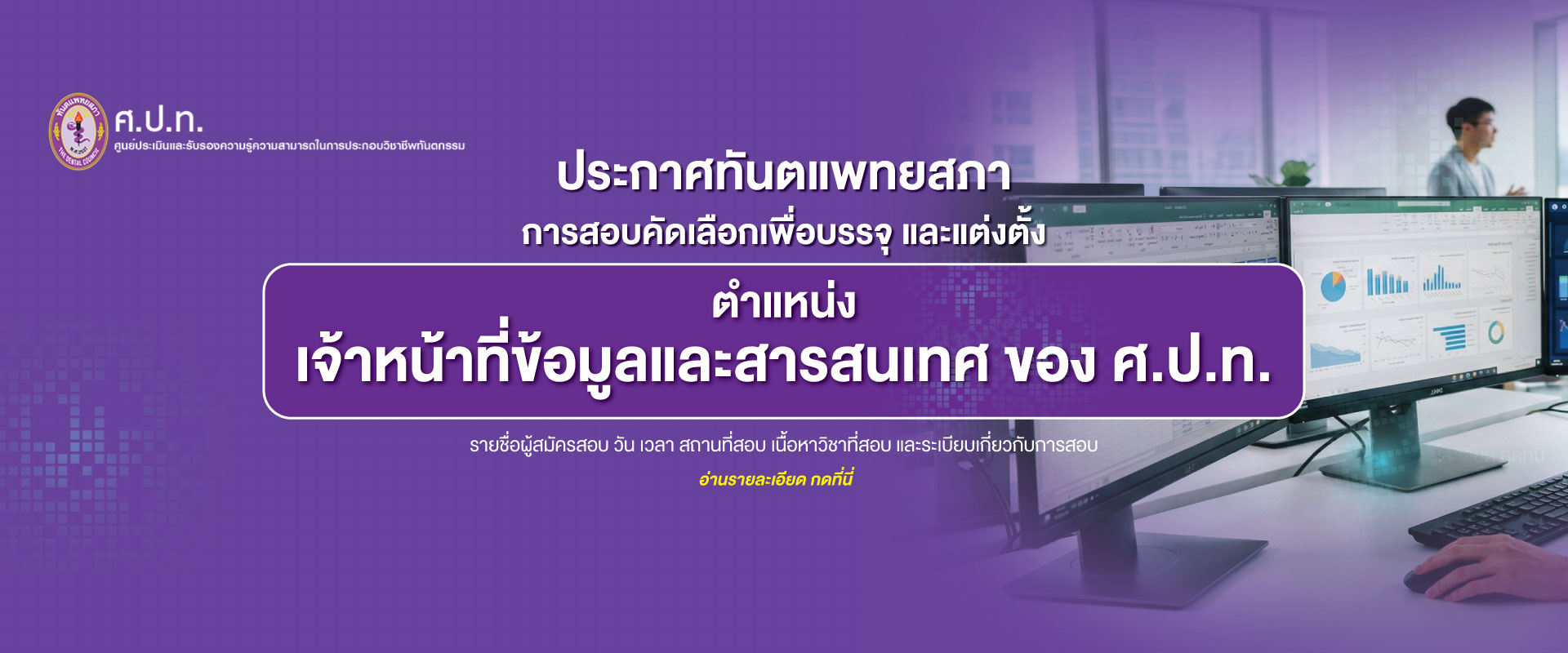 ประกาศทันตแพทยสภา เรื่อง ขยายระยะเวลาการรับสมัครเจ้าหน้าที่ทันตแพทยสภา ในตำแหน่งเจ้าหน้าที่ข้อมูลและ... อ่านต่อ