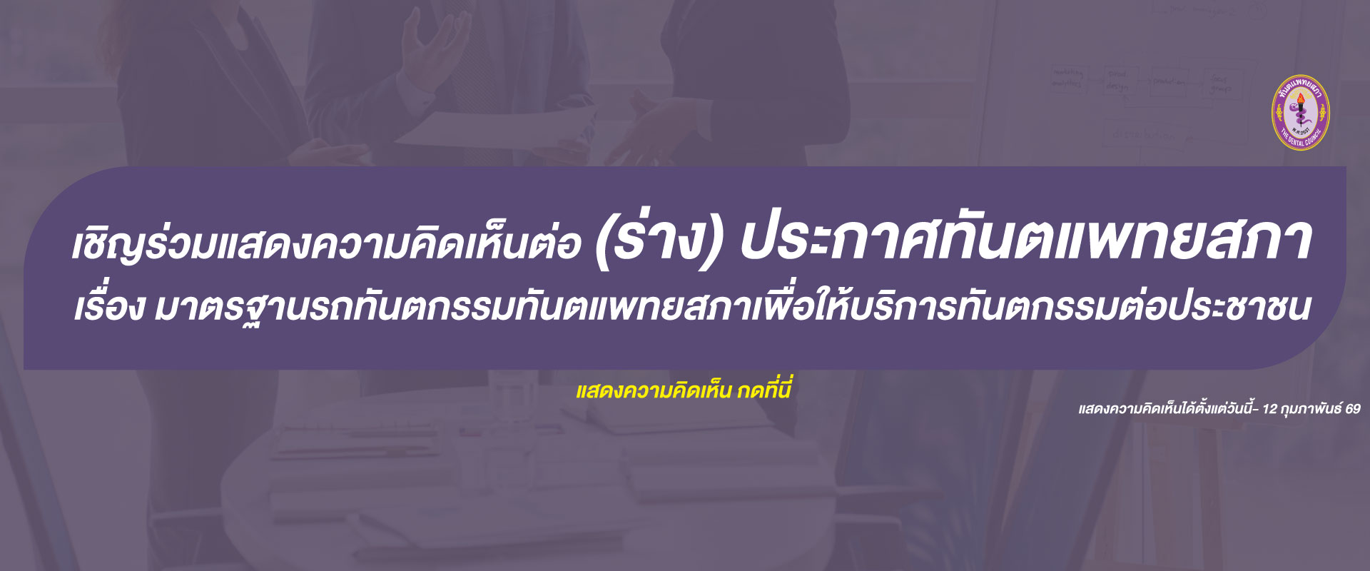 เปิดรับฟังความคิดเห็น ร่างพระราชบัญญัติวิชาชีพทันตกรรม (ฉบับที่ ..) พ.ศ. .... เสนอโดย นางสาวศรีญาดา ... อ่านต่อ