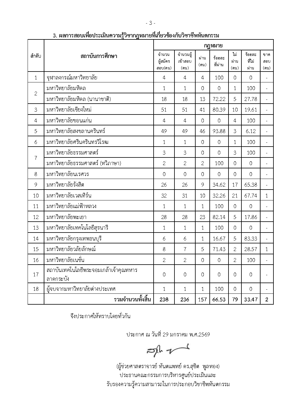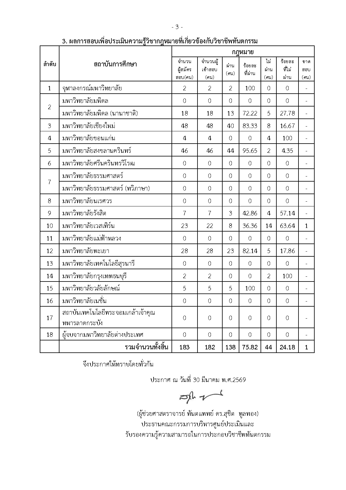 (คลิกอ่านประกาศภาพรวมผลการสอบเพื่อประเมินความรู้ ฯ ครั้งที่ 1-2569 ฉบับเต็มได้ที่นี่)