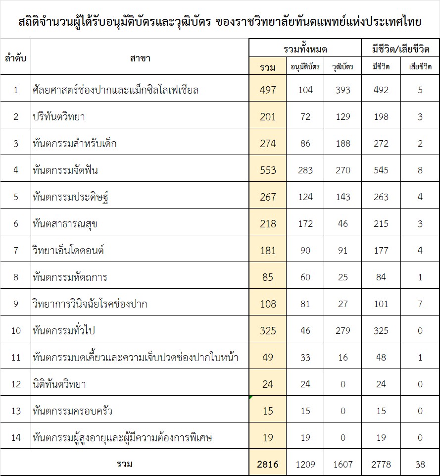 • สถิติจำนวนผู้ได้รับอนุมัติบัตรและวุฒิบัตรของราชวิทยาลัยทันตแพทย์แห่งประเทศไทย (ข้อมูล ณ วันที่ 16 ตุลาคม 2568)