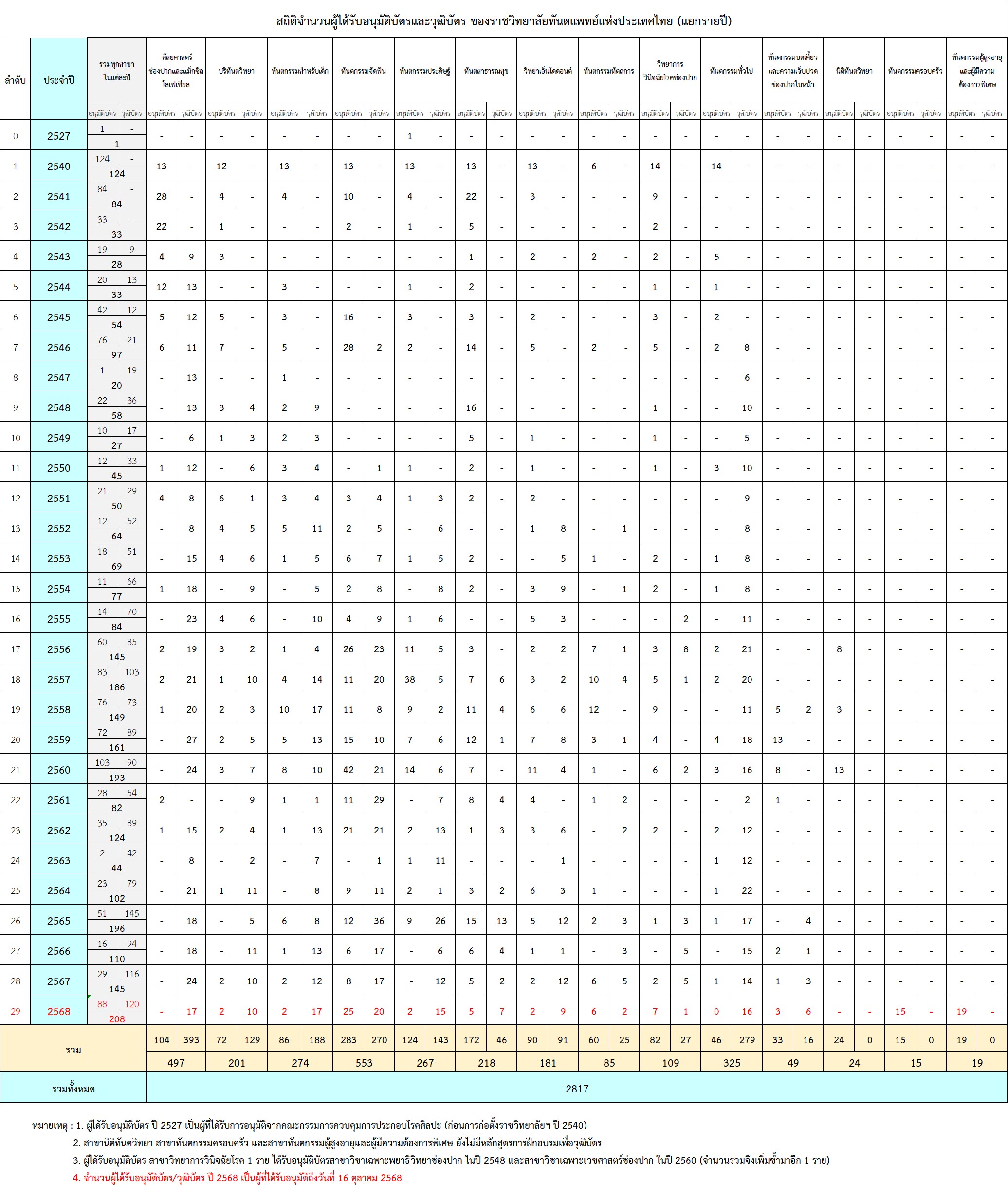 • สถิติจำนวนผู้ได้รับอนุมัติบัตรและวุฒิบัตรของราชวิทยาลัยทันตแพทย์แห่งประเทศไทย(แยกรายปี) (ข้อมูล ณ วันที่ 16 ตุลาคม 2568)